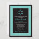 Aqua blue (turquoise, robin's egg blue), black, and white polka dots Bat Mitzvah invitation with fully customisable text. You can also remove the Star of David if you don't want that and the wording on this invitation includes your daughter's Hebrew name but that can also be removed if you don't want it. A cute, girly, polka dot Bat Mitzvah invitation design. This aqua blue and black polka dot invitation is currently customised as a Bat Mitzvah invitation, but it would work well for other Jewish special occasions. All you need to do is change the text.