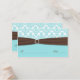 This aqua blue, white, and brown damask placecard with FAUX ribbon and jewels matches the wedding invitation shown below. If you require any other matching items, please email me your request.