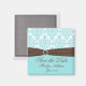This aqua blue, brown, and white damask save the date magnet matches the wedding invitation shown below. You can also customise it to say "Thank You" and use it as a wedding favour for your guests. If there are any other matching items you require, please email me your request.