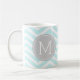 Aqua Blue Chevron Pattern with monogram Coffee Mug