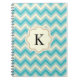 Aqua Blue Cream Chevron Zigzag Stripes Notebook