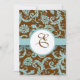 Monogram New Sizes Elegant Vintage Aqua Blue Damask on Brown Wedding Invitation-