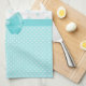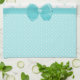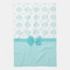 Aqua Blue Damask With Turquoise Ribbon Tea Towel