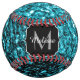 Aqua blue faux glitter sparkles Monogram name Softball