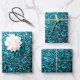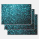 Aqua blue faux glitter sparkles wrapping paper sheet