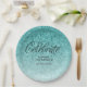 Aqua Blue Glitter Celebrate Personalised Paper Plate