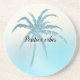 Aqua Blue Glitzy Sparkle Tropical Palm Tree Coaster