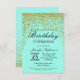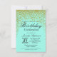 Aqua Blue Gold Glitter Confetti Birthday Party Invitation