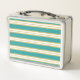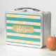 Aqua Blue Gold Stripe Pattern Custom Name Metal Lunch Box