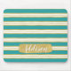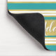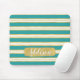 Aqua Blue Gold Stripe Pattern Custom Name Mouse Mat