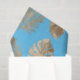 Aqua Blue Gold Tropical Leaves Tissue Paper