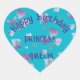 Aqua/blue-green, pink hearts & butterflies balloon heart sticker