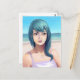 Aqua - Blue Haired Pretty Girl on Beach Postcard