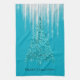 Aqua Blue Icicles Sparkle Christmas Tree Tea Towel