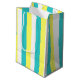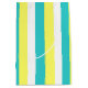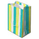 Aqua Blue, Lemon Yellow and White Stripes Medium Gift Bag
