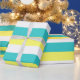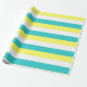 Aqua Blue, Lemon Yellow and White Stripes wrapping paper