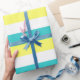 Aqua Blue, Lemon Yellow and White Stripes Wrapping Paper