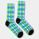 AQUA BLUE #0096FF & LIME GREEN #8EFA00 Argyle Pattern Socks.