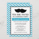 Aqua Blue Moustache Chevron Birthday Party Invitation