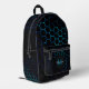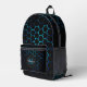 Aqua blue neon honeycomb geometry Monogram Black Printed Backpack