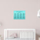 Wedding seating chart poster with ocean background.  Aqua blue color with ocean water image.  The seating chart has black text in both script, for table numbers, and printed text for guests' names.  Married names at top in elegant and modern, hand-written font with one or two lines for date and location of celebration.  Each table number section has room for up to eight guests, or list fewer as needed.  Tables are listed horizontally, but that is easy to change by changing the numbers using the templates.  For fewer tables, simply delete sections as needed, keeping the look symmetrical.