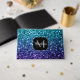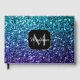 Aqua blue Ombre faux glitter sparkles Monogram Guest Book