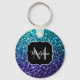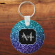 Aqua blue Ombre faux glitter sparkles Monogram Key Ring
