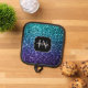 Aqua blue ombre faux glitter sparkles Monogram Pot Holder