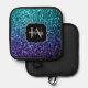Aqua blue ombre faux glitter sparkles Pot Holder. Monogram Personalise with your custom initial and name. Beautiful girly glamourous dark and light blue shiny glitters sparkles aqua purple ombre summer colours. Photo of blue sparkles, not real glitter! Faux sparkles! No messy glitter to the touch!