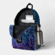 Aqua blue ombre faux glitter sparkles Monogram Printed Backpack. Cool fashion accessory bag for her. Beautiful girly glamourous dark and light blue shiny glitters sparkles design. Photo of sparkles, not real glitter! Create a unique and personalised backpack with a custom touch! Modern monogram with your initial and your name for that extra personal flair.