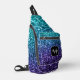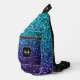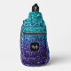 Aqua blue ombre faux glitter sparkles Monogram Sling Bag