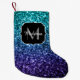 Aqua blue Ombre faux glitter sparkles Monogram Small Christmas Stocking