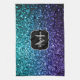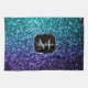 Aqua blue Ombre faux glitter sparkles Monogram Tea Towel