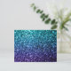 Aqua blue Ombre faux glitter sparkles Postcard