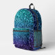Aqua blue ombre faux glitter sparkles Printed Backpack. Cool fashion accessory bag for her. Beautiful girly glamourous dark and light blue shiny glitters sparkles design. Photo of sparkles, not real glitter! Create a unique and personalised backpack with a custom touch!