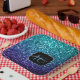 The glitter details are simulated in the artwork. No actual glitter will be used in the making of this product.