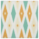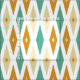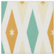 This fun mid-century modern fabric features 3 large diamonds with 2 stars in the centre, in a combination of the colours aqua blue, orange, and cream. This would make a colourful addition to your sewing project.