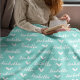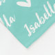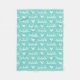 Custom Aqua Blue Turquoise Green Fleece Blanket with Personalised Name and Heart Design -