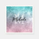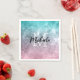 Aqua blue Pink ombre sea galaxy abstract Monogram Napkin