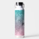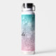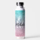 Aqua blue Pink ombre sea galaxy abstract Monogram Water Bottle