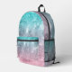 Aqua blue Pink ombre sea galaxy abstract Printed Backpack. Sea pink viridian green ombre abstract galaxy trendy design. Abstract digital galaxy with sea pink and viridian green ombre colours from coral collection.