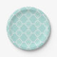 Aqua Blue Quatrefoil Geometric Pattern Paper Plate