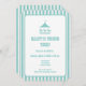 Aqua blue textured seersucker stripes with carousel ride. Birthday or shower invitation.