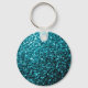 Aqua blue shiny faux glitter sparkles key ring