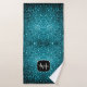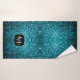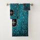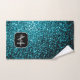 Aqua blue shiny faux glitter sparkles Monogram Bath Towel Set