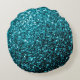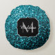 Aqua blue shiny faux glitter sparkles Monogram Round Cushion