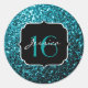 Aqua blue shiny faux glitter sparkles Sweet 16 Classic Round Sticker