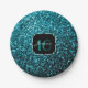 Aqua blue shiny faux glitter sparkles Sweet 16 Paper Plate