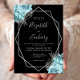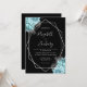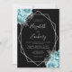 Aqua Blue Silver Floral Black Wedding Invitation