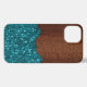 Aqua blue sparkles rustic brown wood faux iPhone case